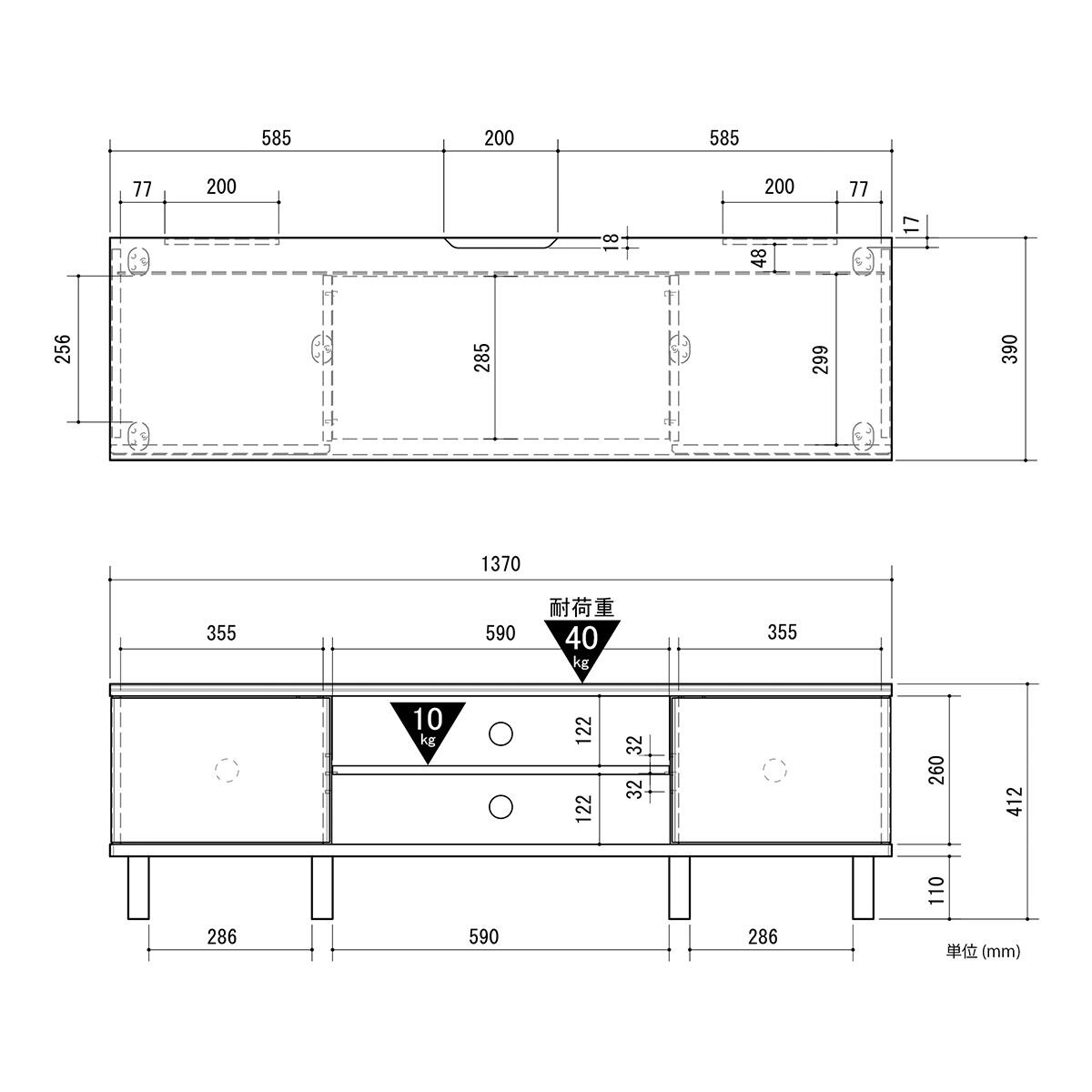 耐荷重:天板40kg、棚板:10kg