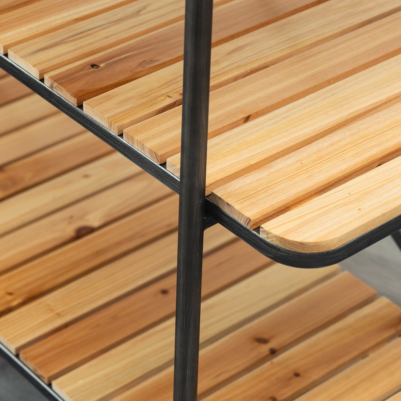 ・細めのアイアンフレームと天然木の組み合わせがおしゃれ。