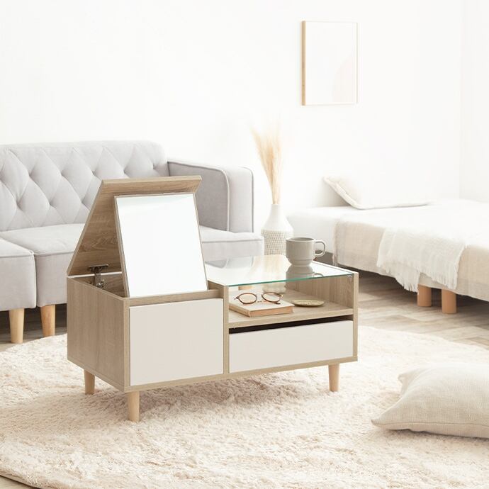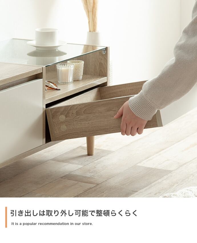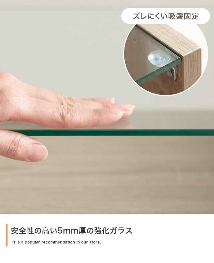 【耐荷重】天板:約5kg 、ガラス天板:約2kg、ディスプレイ収納底板:約5kg、引き出し(左):約3kg、ワイド引き出し(右):約3kg