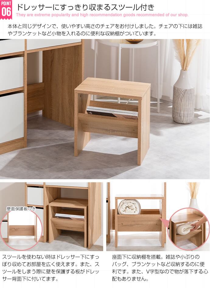 【商品重量】ドレッサー:約27.3kg、チェア:約6kg
