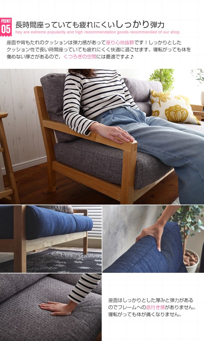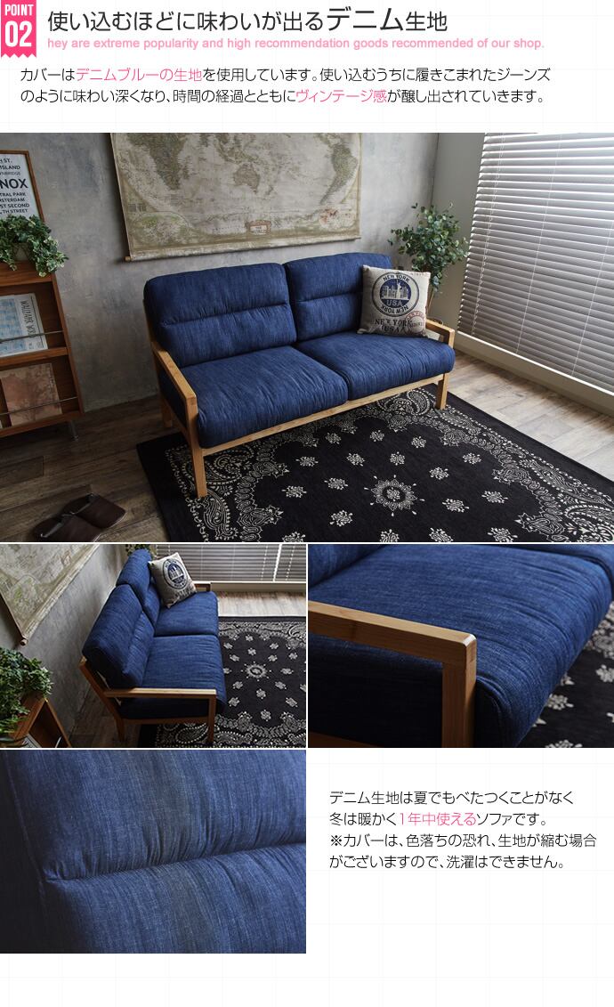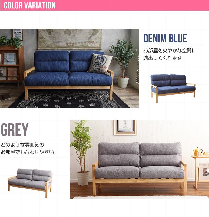 フレーム:天然木、生地:デニム、内部:ポリプロピレン綿