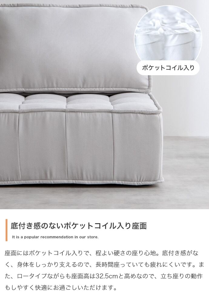 座面:Sバネ、ウィービングベルト、ポケットコイル