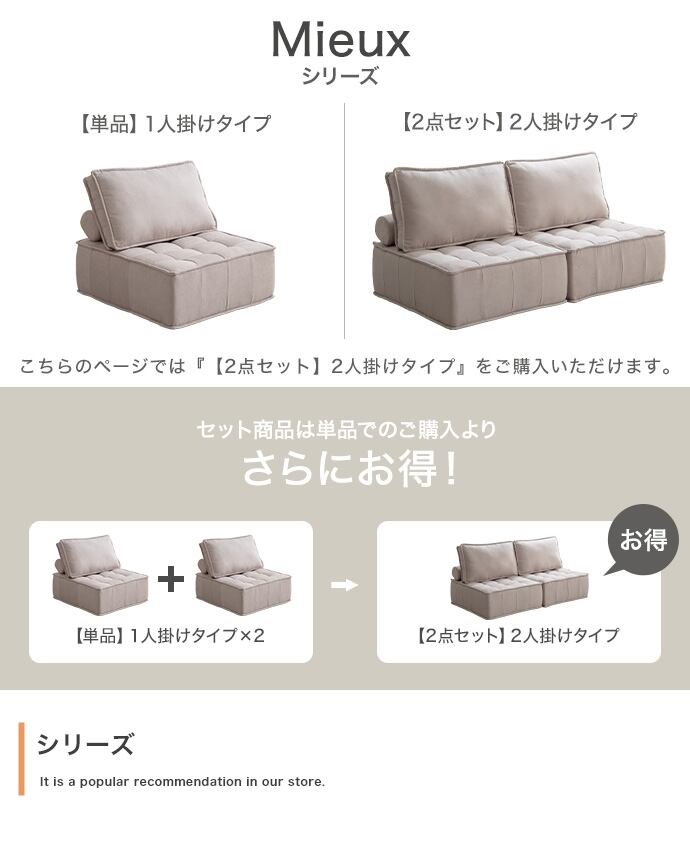 幅152cm(76cm+76cm)×奥行82cm×高さ72cm (座面高:約32.5cm)