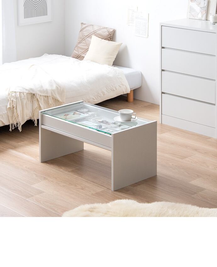【耐荷重】(棚板/引き出し下)約5kg、(ガラス天板)約3kg、(引き出しトレー)約5kg