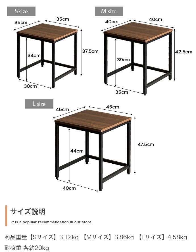 Sサイズ:幅35cm×奥行35cm×高さ37.5cm