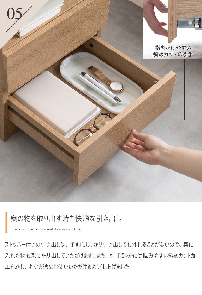 【耐荷重】天板:約3kg 、オープン収納スペース:約5kg、引き出し底板:約3kg