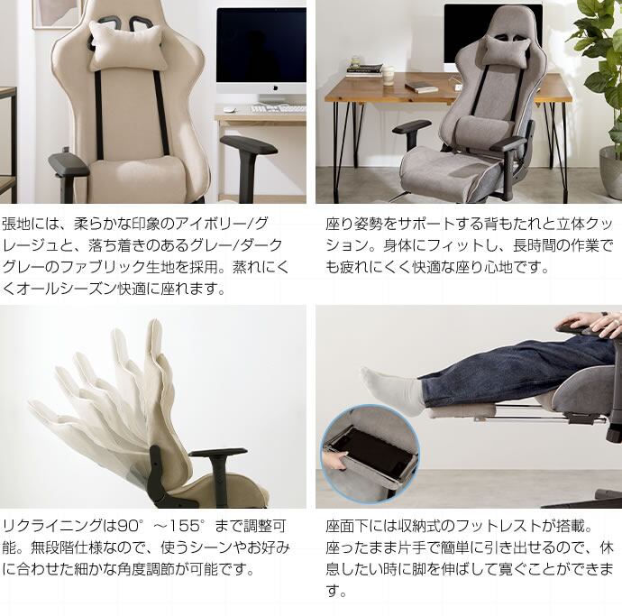 ※リクライニングは90〜155度に設定可能。