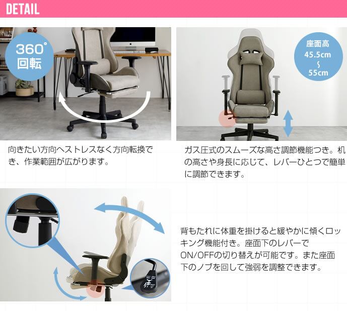 (座面高さ:45.5cm〜55cm)