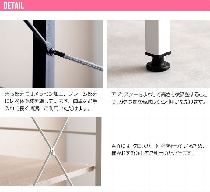 【耐荷重】各棚:約10kg、スライドトレー:約8kg