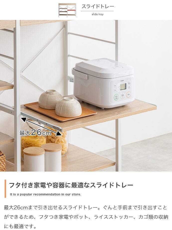【耐荷重】天板:約30kg、各引き出し:約5kg、各棚:約10kg、スライドトレー:約5kg