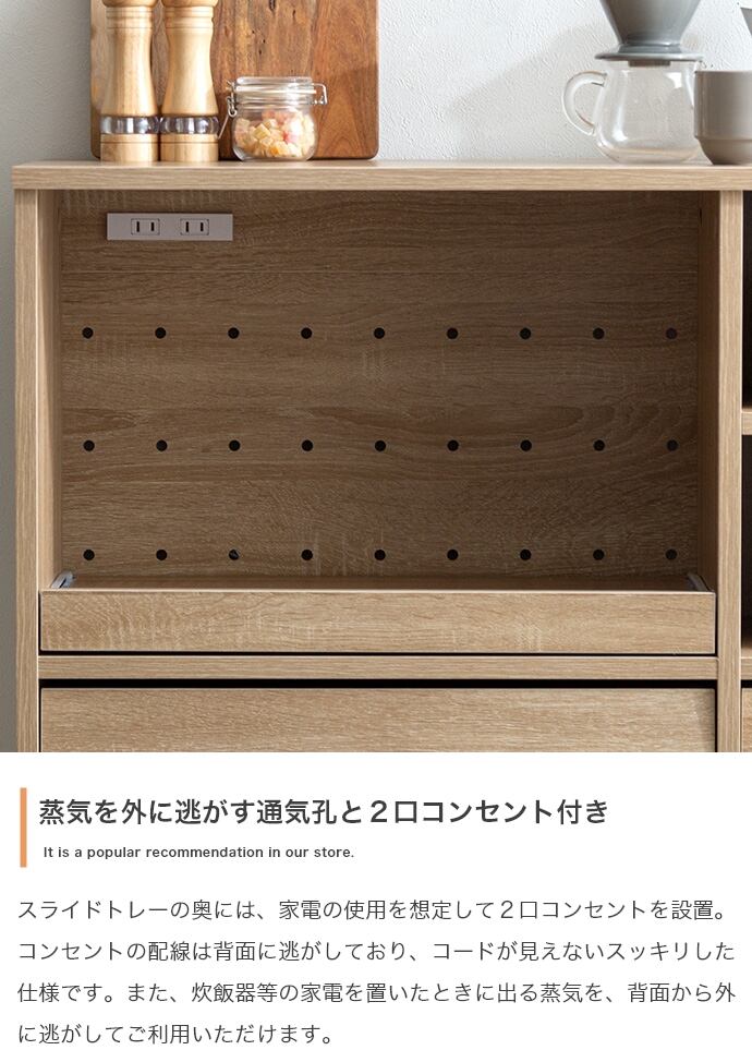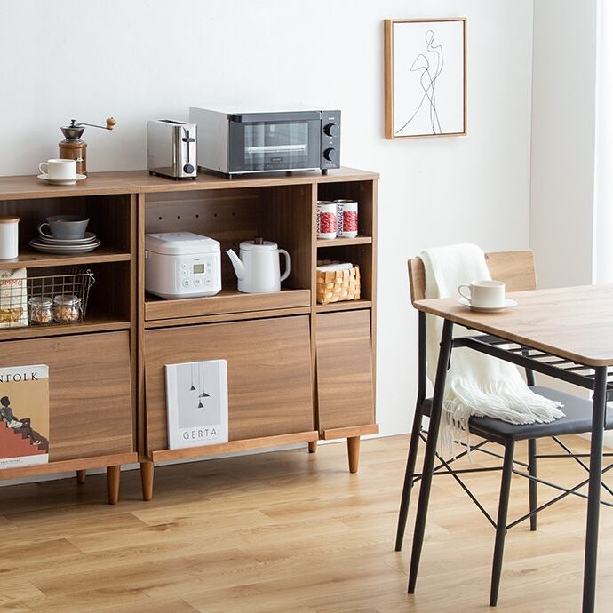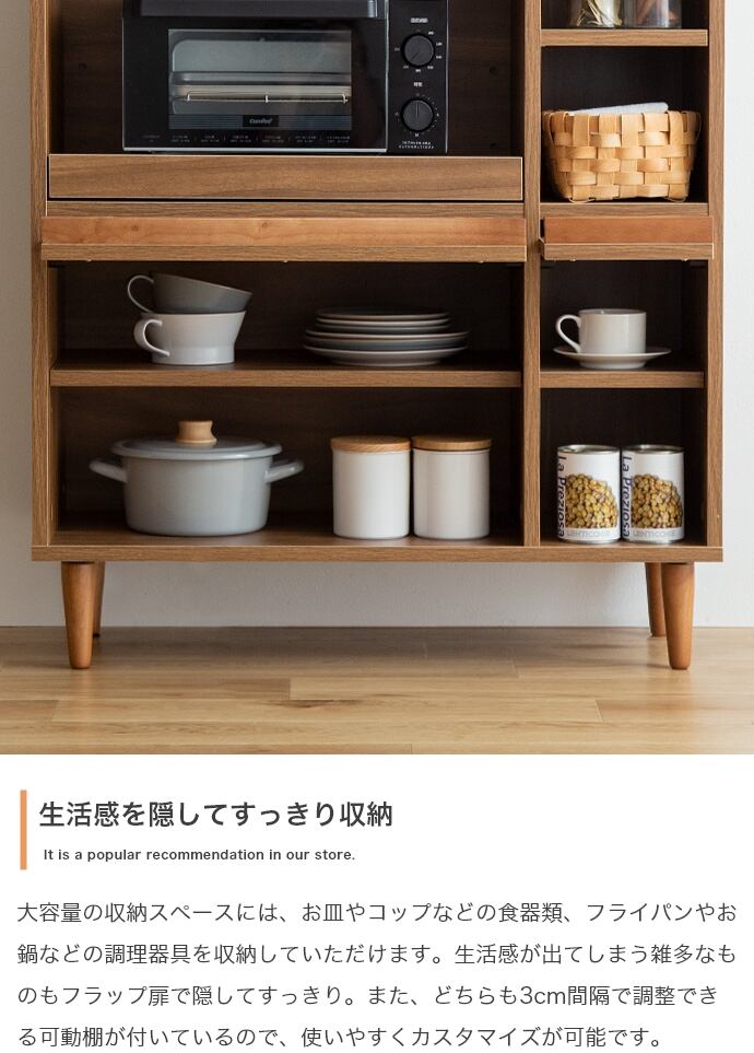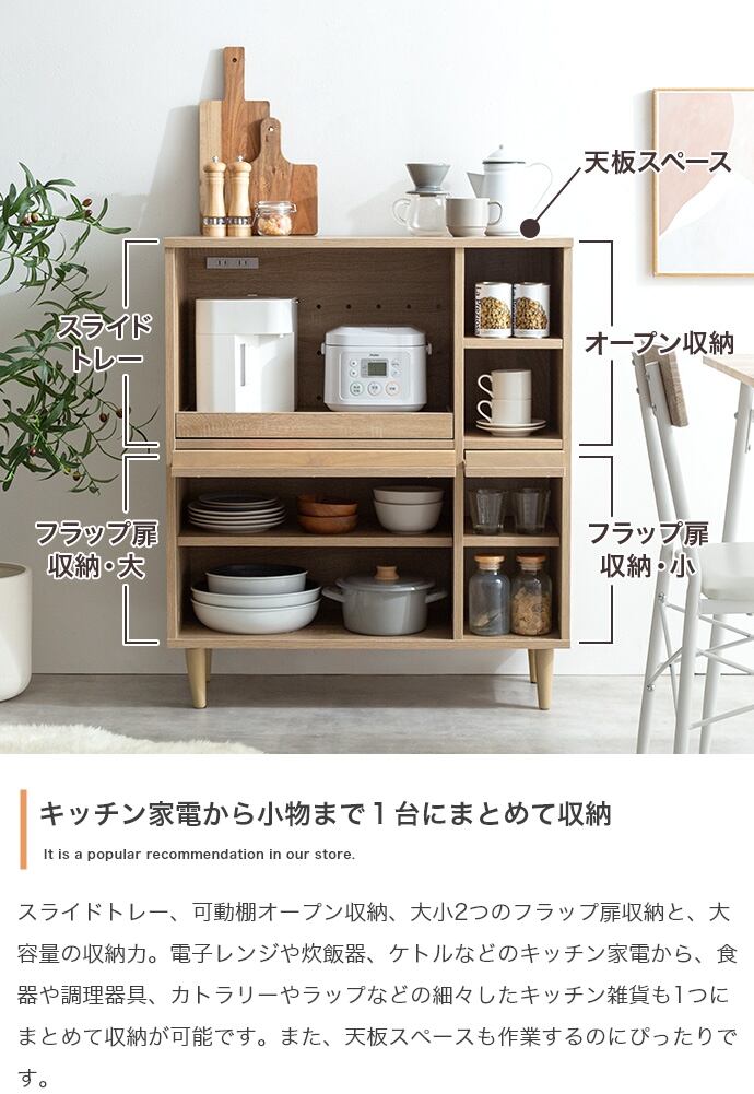 【耐荷重】天板:約10kg 、スライドトレー:約5kg、オープン収納可動棚:約3kg、フラップ扉・大可動棚:約3kg、フラップ扉・大底板:約10kg、フラップ扉・小可動棚:約3kg